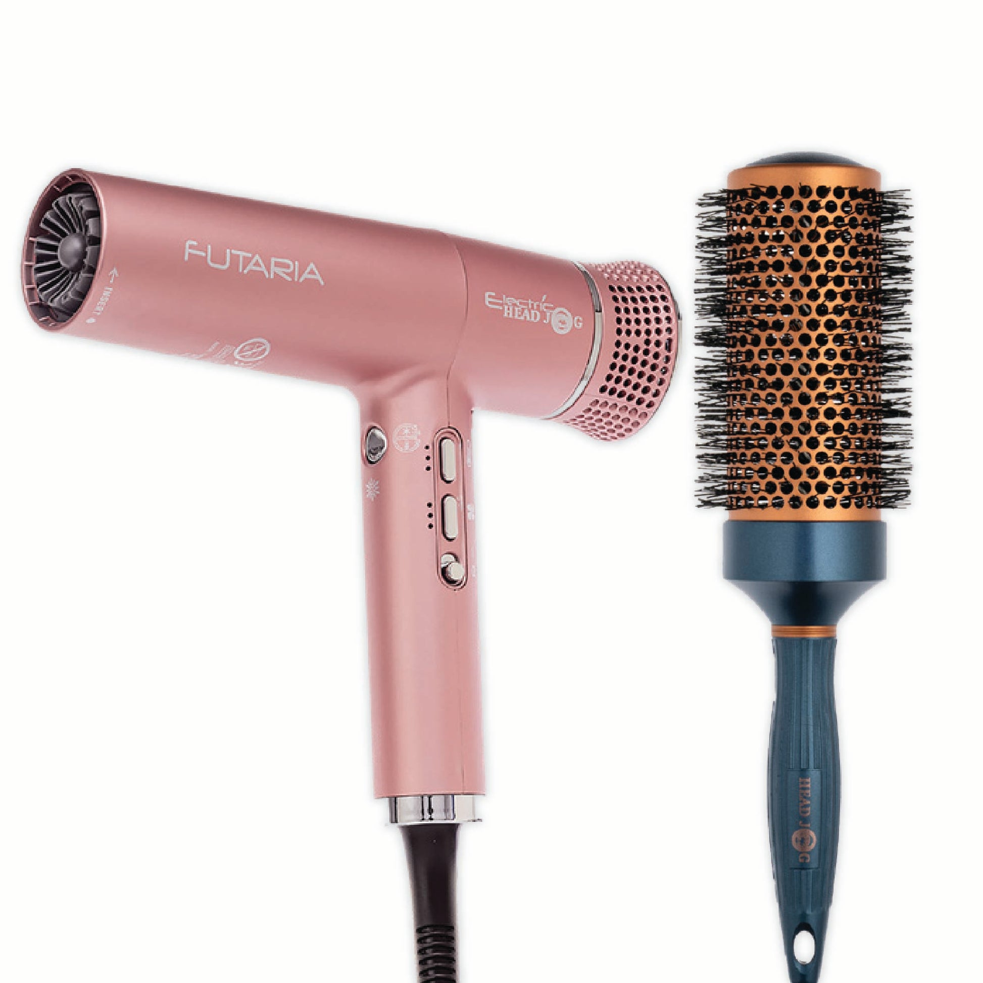 Achieve a flawless, salon-worthy blow dry with this power duo. The high-performance futaria hair dryer and precision brushes work in harmony to deliver smooth, voluminous results with ease. Perfect for stylists and at-home pros alike.